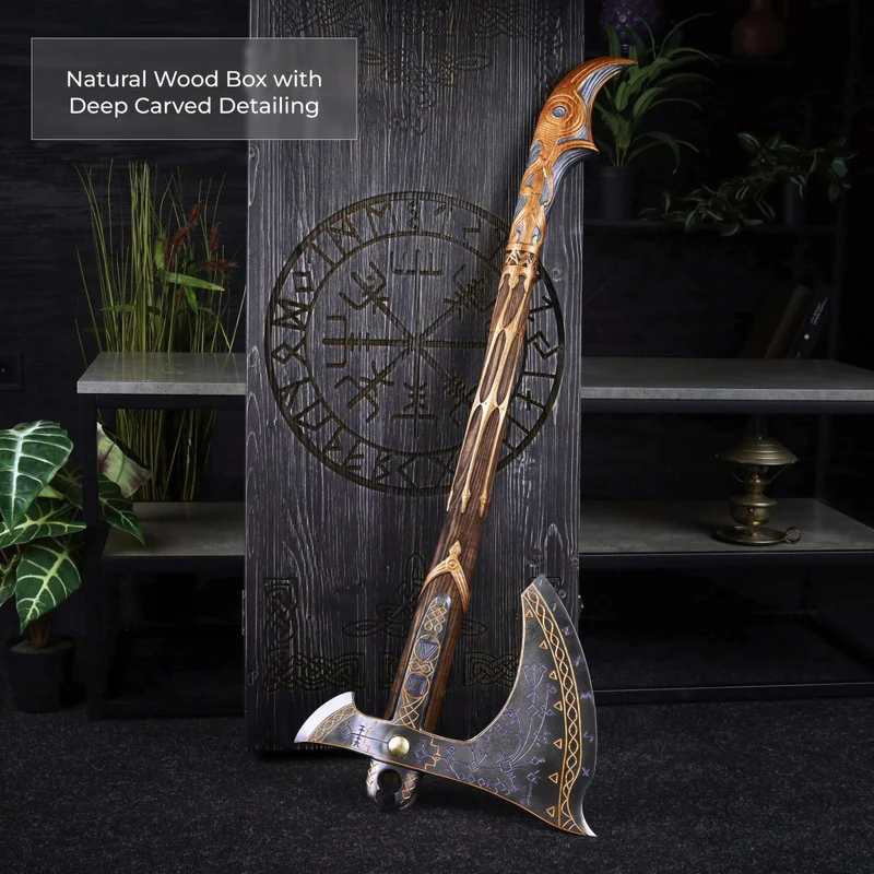 Distinct Features: With its ashwood handle, high carbon steel 1060 head, and optional wooden box, it’s a blend of authenticity and luxury. The standard engraving can be customized to make it even more special.