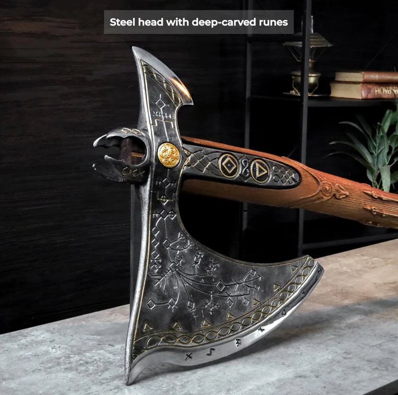 Personalize Your Axe: Elevate your axe with optional custom engravings on the wooden handle or enhance its presentation with a distinct wooden box. It's more than just an axe; it's a part of Norse mythology and the epic game saga.