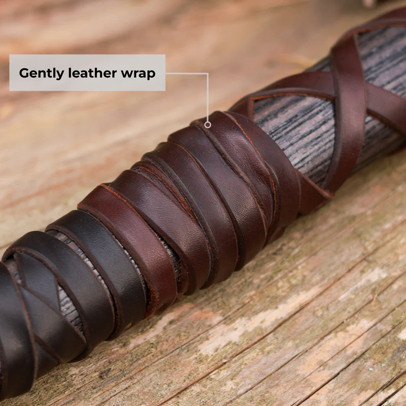 - Superior Materials & Build: Constructed from high carbon steel W108, forged and coupled with an ash wood handle enveloped in gentle leather, this Battle Axe promises both durability and a firm grip. Its hardness of Rockwell 54-58(HRC) speaks volumes of its quality.