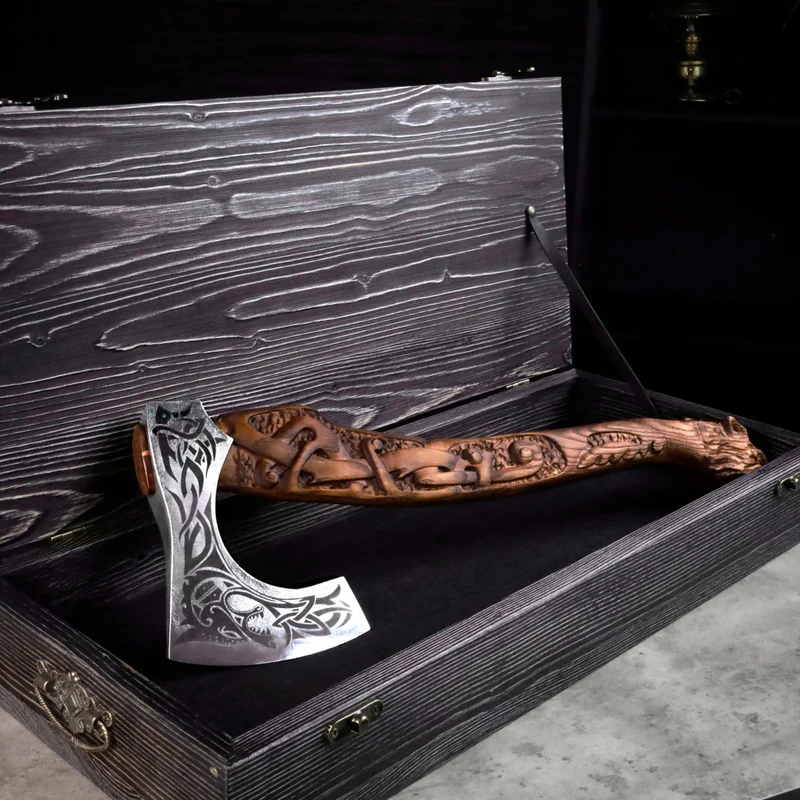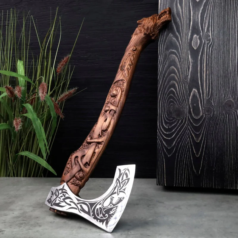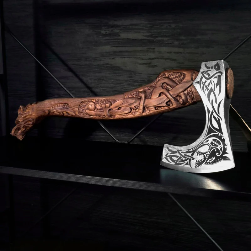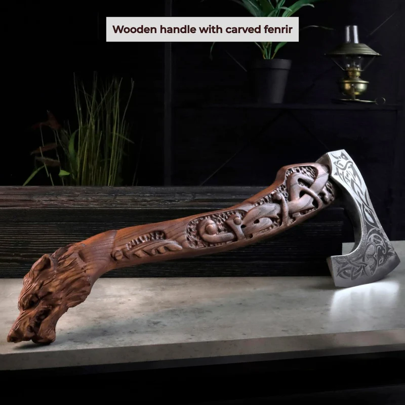 Unique Artistic Design: Boasting a hand-carved Fenrir on the handle – the feared, legendary wolf from Norse mythology, symbolizing raw power, destiny, and the breaking of bonds.