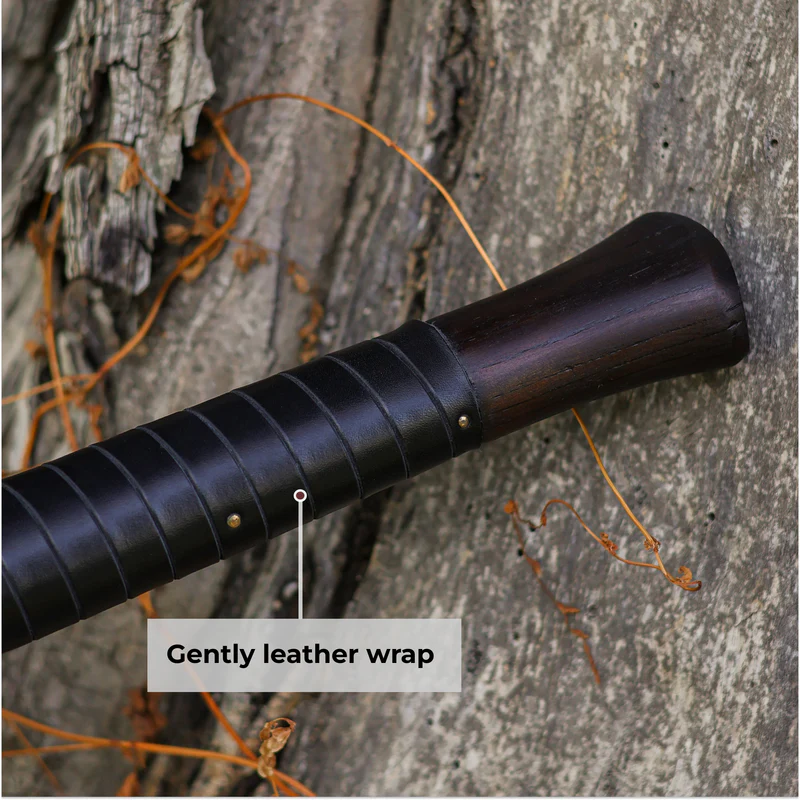 Artistry & Functionality Unified: Ash wood handle, intricately wrapped in soft leather, flaunts the perfect blend of Nordic design and durability. Alongside, the included leather cover ensures protection when not in action.